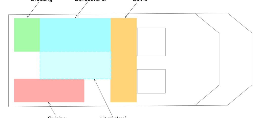 - Volume de rangement important. Une variante est proposée pour ranger des objets longs (surf, skis, etc),